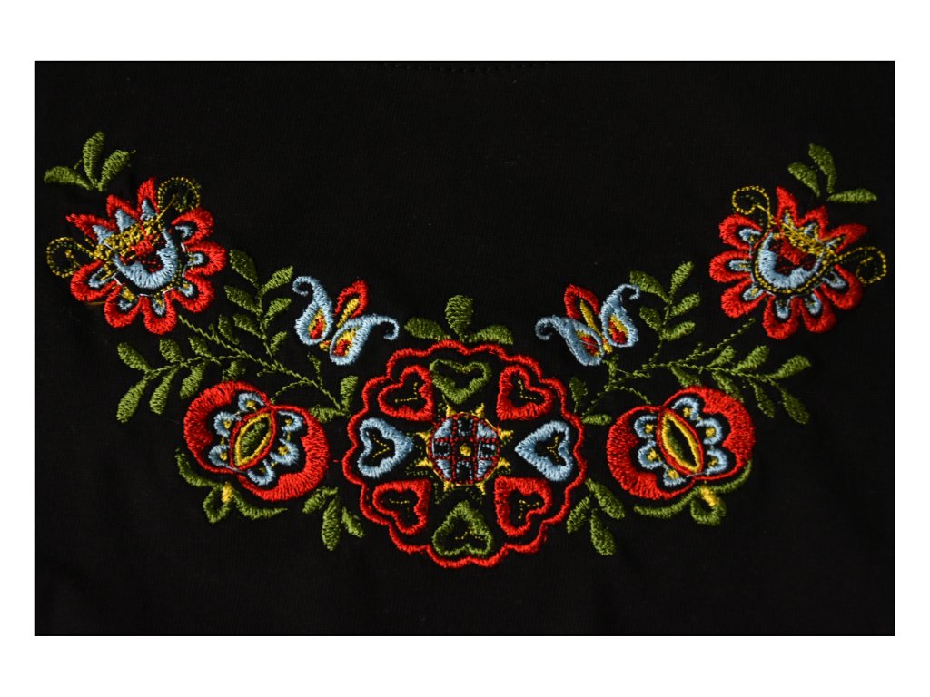 Pánské triko z velmi kvalitního materiálu s jednoduchou výšivkou do obloučku. Tuto tradiční výšivku jsme pro vás převzali ze starých maleb, které se nacházely na dětských kolébkách. Výšivka je umístěna v horní části zad, v přední části trika se pak nachází logo naší firmy.